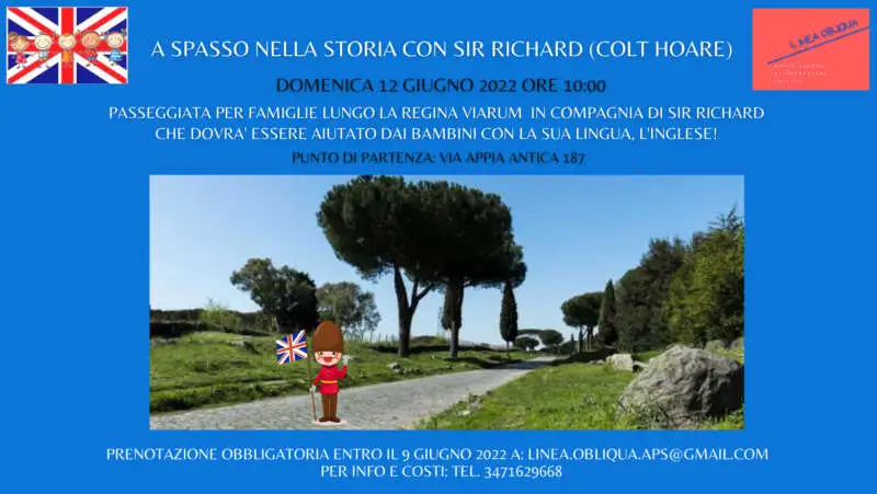 Passeggiata per famiglie lungo la via Appia insieme ad un immaginario Sir Richard che avrà bisogno dell’aiuto di bambini con la lingua inglese!