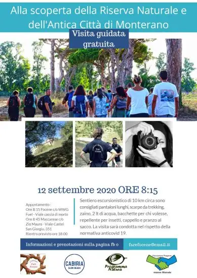 L’appuntamento è alle ore 8.15 di sabato 12 settembre automuniti presso il parcheggio del Wwg Fuel (viale Coccia di Morto- Focene) e il secondo punto di incontro per i residenti di Fregene e Maccarese è al ristorante Zio Mauro alle ore 8.45. Il rientro è previsto per le ore 18.00 circa.