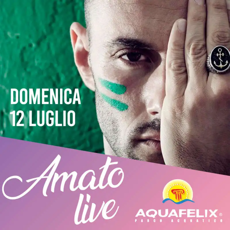 L’artista e showman, noto per la sua partecipazione a importanti programmi TV, come Amici di Maria de Filippi, X Factor Romania e All Togheter Now TV, sino al Roxy Bar di Red Ronnie e Verissimo di Canale 5, per anni ha animato le estati di Aquafelix, che per lui è diventata quasi una seconda casa, riscuotendo un enorme successo tra gli ospiti. Domenica 12 luglio, Amato torna al Parco per riabbracciare gli ospiti e gli amici di Aquafelix e sarà protagonista di una splendida performance dal vivo.
