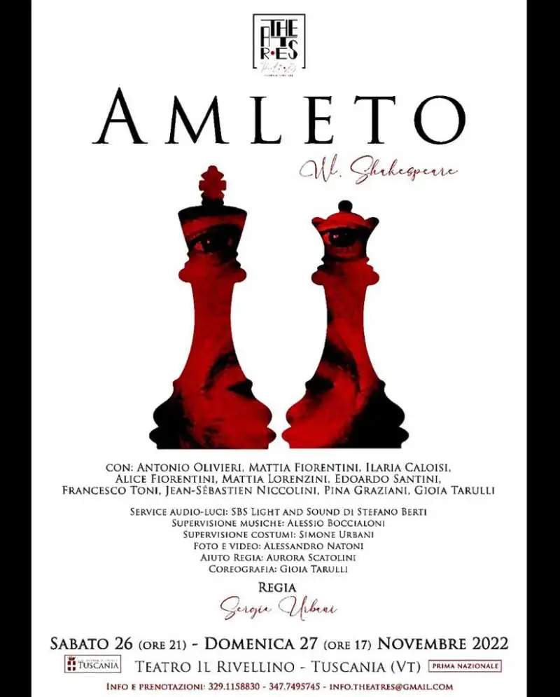 Sabato 26 (ore 21) e Domenica 27 novembre (ore 17) presso il Teatro Il Rivellino di Tuscania debutterà, in prima nazionale, Amleto di W.Shakespeare diretto dal Maestro Sergio Urbani con la Compagnia teatrale Theatr•Es.
