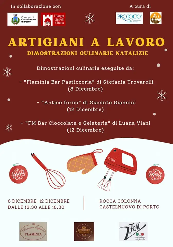 Vi presentiamo un progetto realizzato insieme all’Associazione “Ager Vetus” e in collaborazione con il Comune di Castelnuovo di Porto, inserito all’interno della programmazione di eventi natalizia: “ARTIGIANI A LAVORO – dimostrazioni culinarie natalizie“.