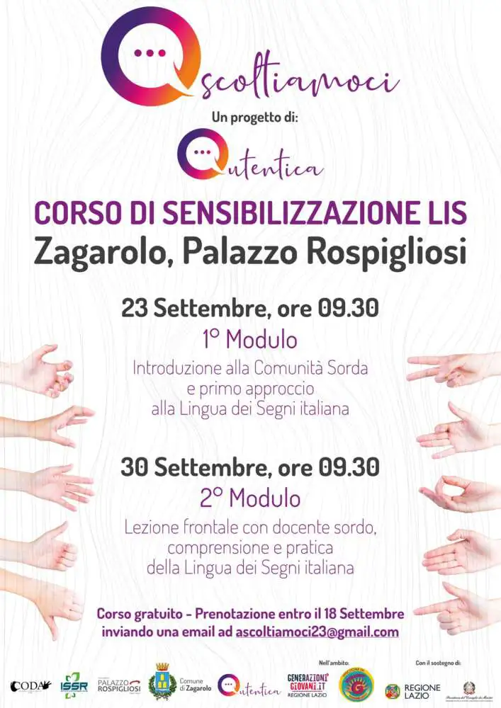 AL VIA I CORSI GRATUITI DI SENSIBILIZZAZIONE LIS APERTI A TUTTI – A ZAGAROLO IL 23 E 30 SETTEMBRE