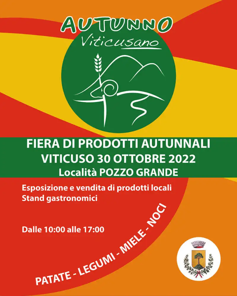 Domenica 30 Ottobre 2022 dalle ore 10:00 alle 17:00 a Viticuso appuntamento con l’evento Autunno ViticuSANO fiera di Prodotti Autunnali.