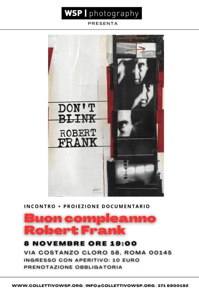 Venerdì 8 novembre a partire dalle 19.00 WSP Photography è lieta di presentare un’intera serata dedicata ai 100 anni dalla nascita del grande fotografo Robert Frank.