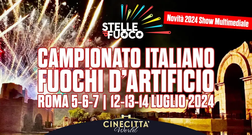 Il Campionato Italiano di Fuochi d’Artificio torna protagonista a Cinecittà World, giungendo alla settima edizione con due week end scoppiettanti: 5, 6, 7 e 12, 13, 14 Luglio!