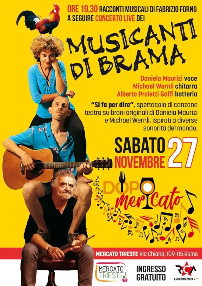 DOMENICA 27 NOVEMBRE la nostra CANZONE TEATRO approda nello storico Mercato Trieste di Roma, da anni centro propulsore di cultura, tra specialità alimentari e specialità musicali.