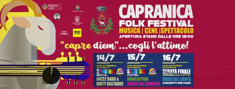 Preparati a immergerti in un’atmosfera unica e coinvolgente! Non mancare al Capranica Folk Festival – l’evento che unisce la magia della musica live all’energia travolgente del folklore!