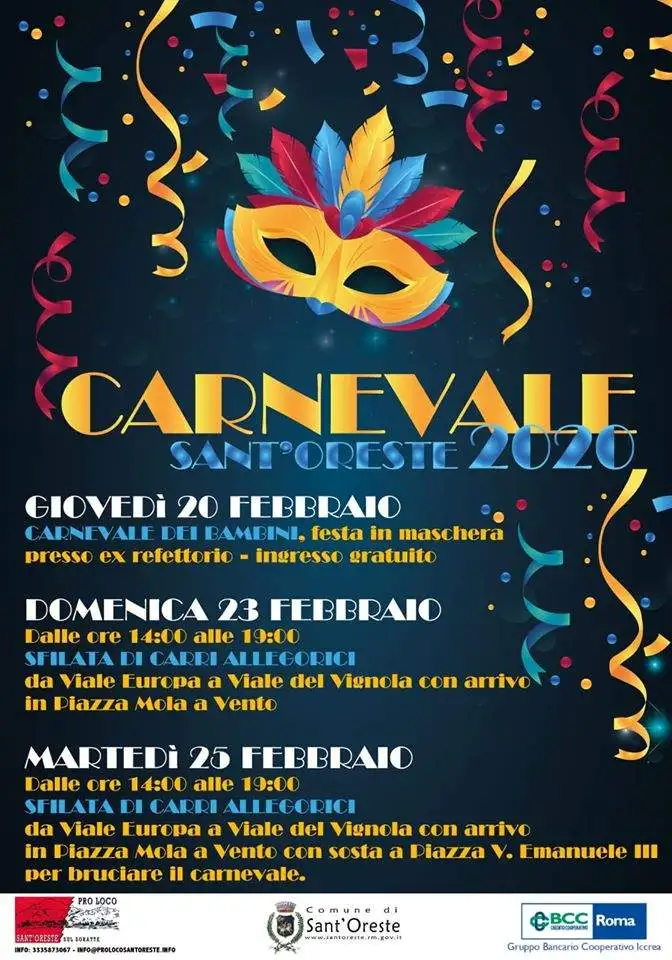 Arriva il Carnevale anche a Sant’Oreste, comune del Lazio, in provincia di Roma, noto soprattutto per il famoso Bunker di Mussolini, il bunker scavato nella pancia del Monte Soratte.