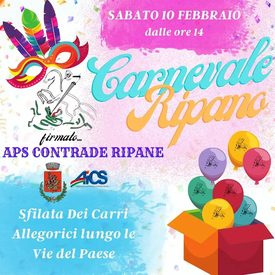Vi Aspetta Sabato 10 Febbraio per Festeggiare Insieme la 5^edizione del Carnevale Ripano 2024