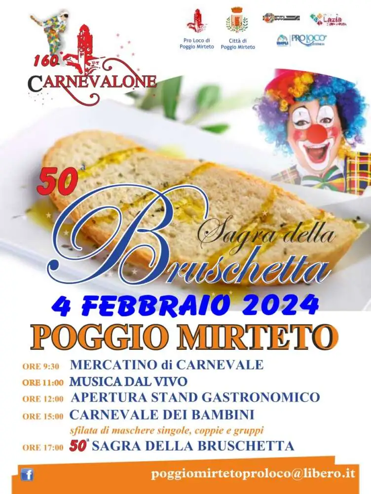 In occasione del Carnevalone Poggiano, la Proloco di Poggio Mireto organizza la Sagra della Bruschetta.