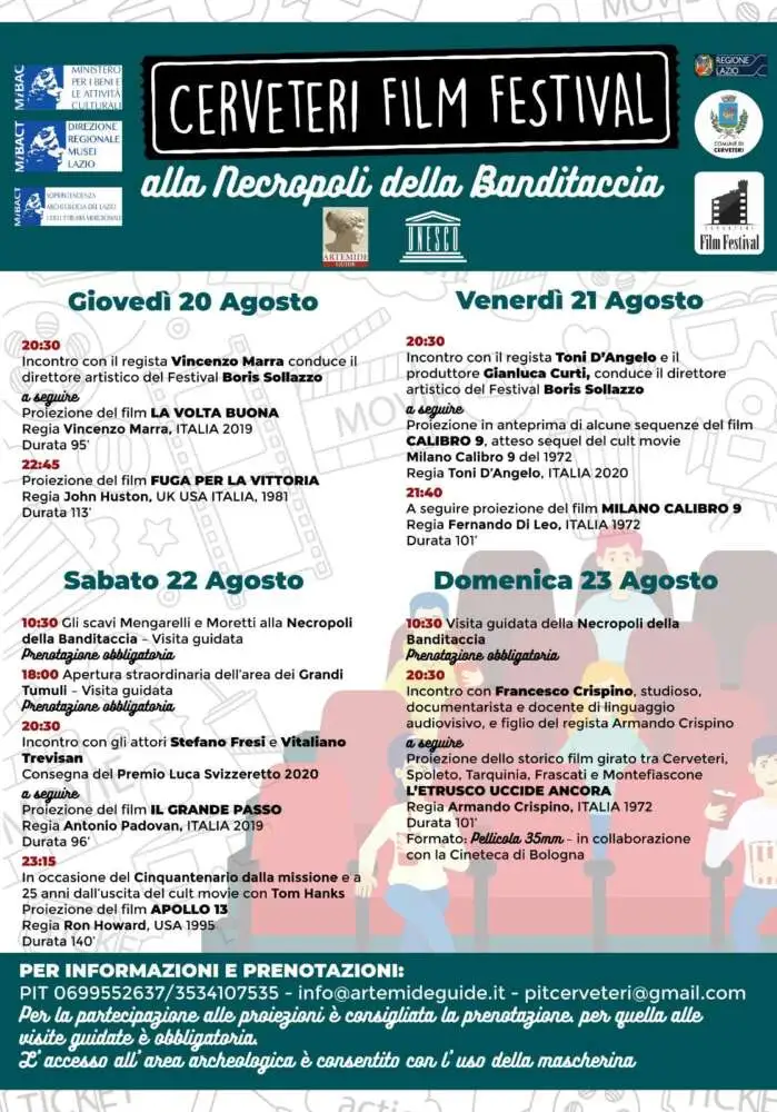 Torna l’appuntamento col cinema a Cerveteri, dal 20 al 23 agosto, presso la Necropoli della Banditaccia, con ingresso gratuito.