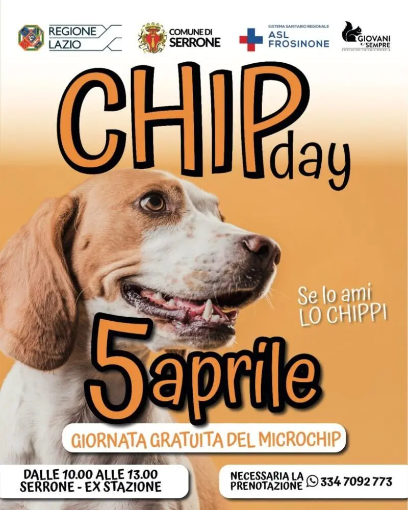 La Giornata del Chip Day si terrà il 5 aprile, dalle 10:00 alle 13:00, presso l’ex stazione di Serrone. Un evento di grande rilevanza dedicato alla sensibilizzazione e all’informazione sull’importanza dell’identificazione elettronica degli animali.