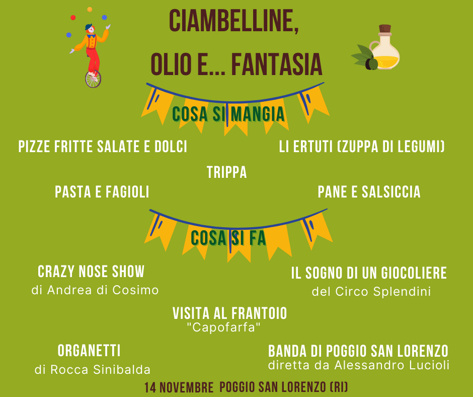 Il piccolo borgo storico di Poggio San Lorenzo animerà vicoli e piazzette per la nuova edizione di “Ciambelline, olio e… fantasia” con stand gastronomici di prodotti tipici e spettacoli, un mercatino di agricoltori locali, laboratori e visite guidate.