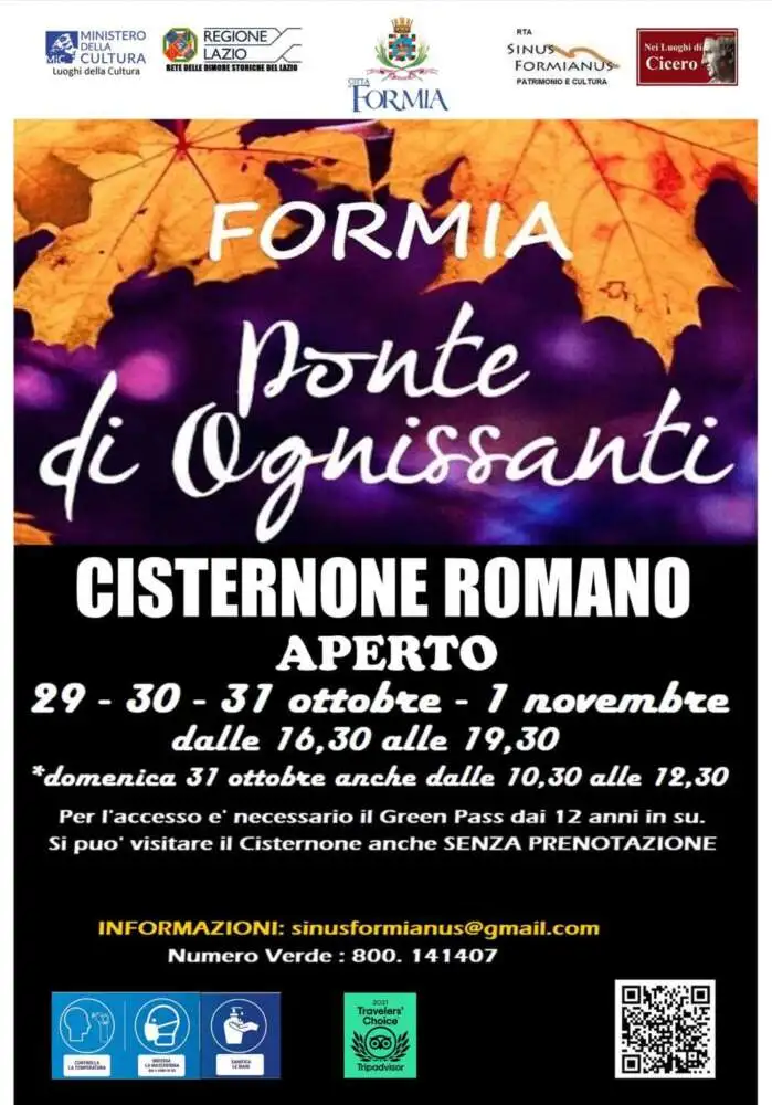 Per il Ponte di Ognissanti (Week End 4 giorni) il CISTERNONE ROMANO resterà aperto per i Visitatori.