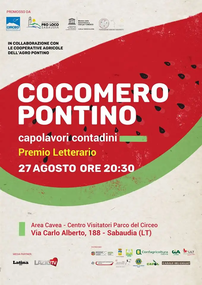La Proloco di Sabaudia, il Parco Nazionale di Circeo congiuntamente al Club per l’Unesco di Latina e le Cooperative agricole dell’agro-pontino organizzano un: PREMIO LETTERARIO COCOMERO PONTINO”