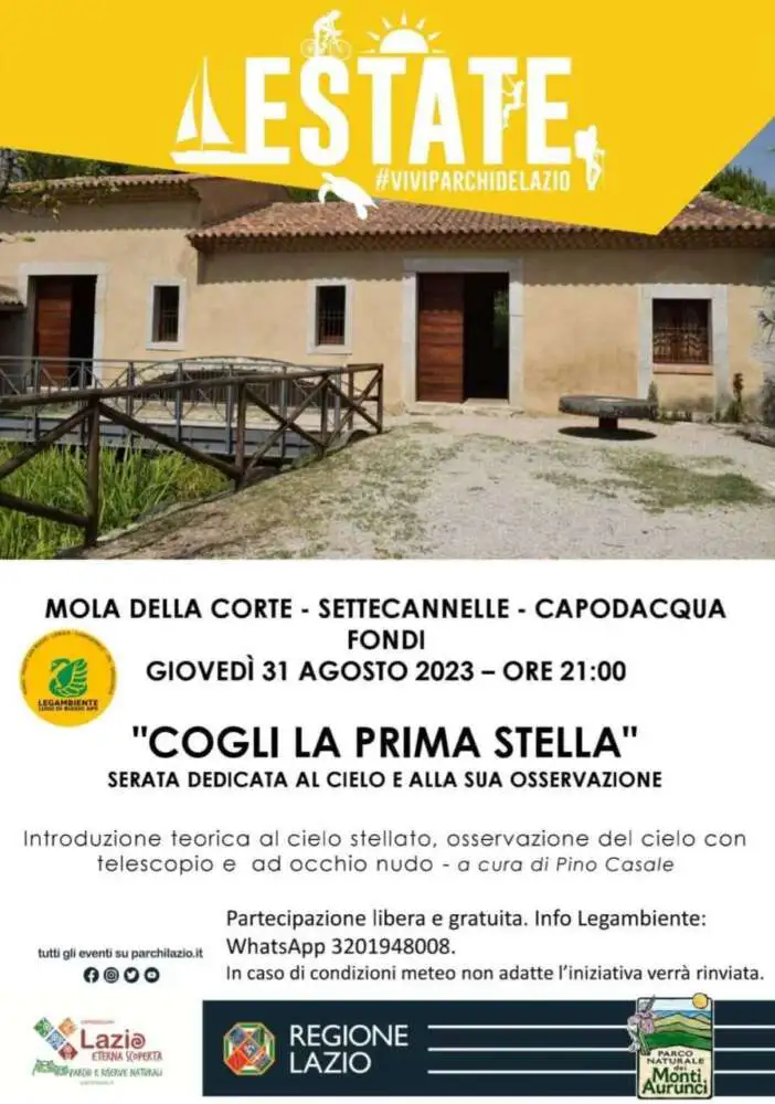 All’interno della rassegna #viviparchidelazio il Parco Naturale dei Monti Aurunci ed il circolo “Luigi Di Biasio” hanno organizzato giovedì 31 agosto alle 21:00 l’evento “Cogli la prima stella” serata dedicata al cielo e alla sua osservazione.