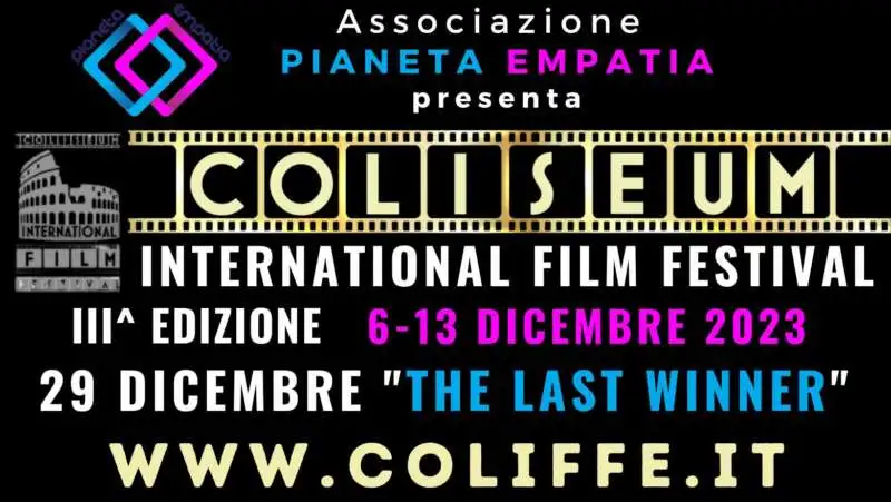 Il 29 dicembre Roma non sarà solo la città del Papa: sarà la città del cinema. Dalle ore 16:00 al Caffè Letterario di Via Ostiense, il Coliseum International Film Festival, l’ultimo festival cinematografico dell’anno, proietta le opere vincenti e premia gli ultimi vincitori dell’anno (60 suddivisi fra i 9 concorsi) con gli awards “The Last Winner”.