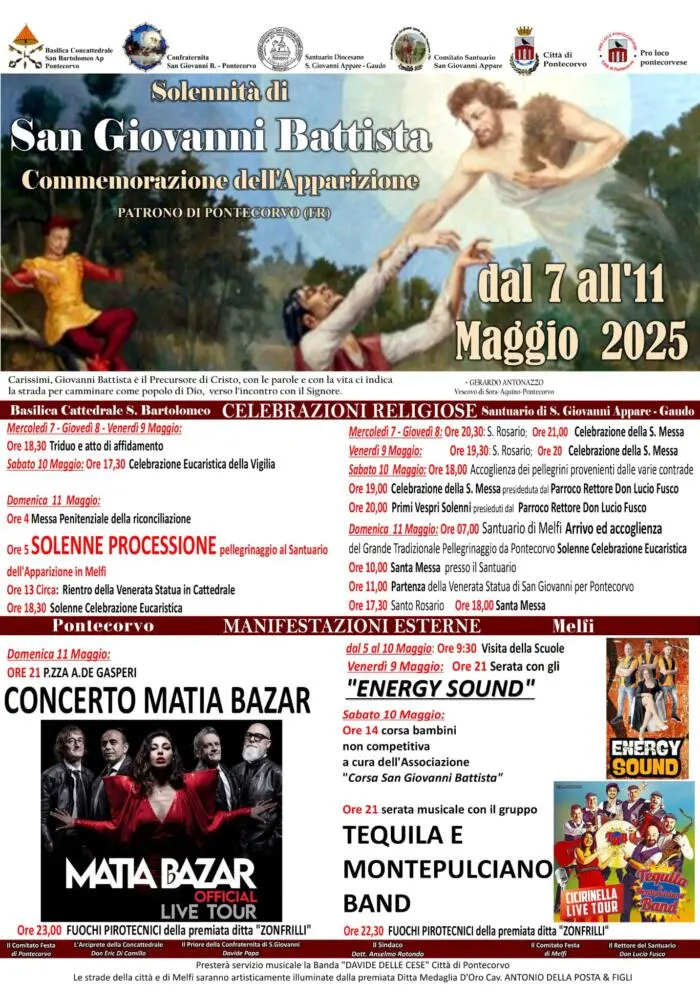 Dal 7 all’11 Maggio a Pontecorvo Solenni Festeggiamenti in onore di San Giovanni Battista, Commemorazione dell’Apparizione.