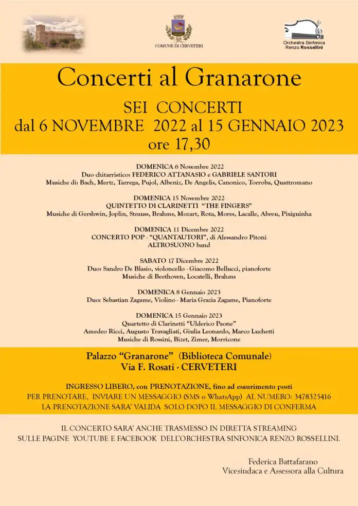 A Cerveteri tornano gli appuntamenti con l’Orchestra Sinfonica Rossellini. Ben sei gli appuntamenti che l’Assessorato alle Politiche Culturali del Comune di Cerveteri, propone a partire da domenica 6 novembre all’interno dell’Aula Consiliare del Granarone.