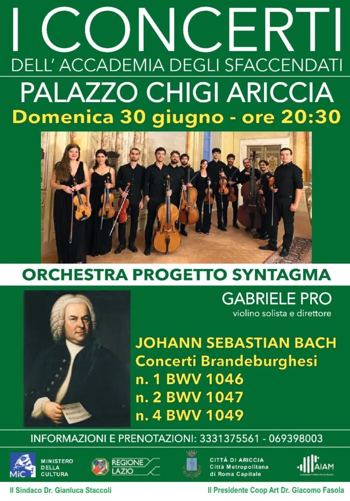 Domenica 30 giugno, alle ore 20:30, nella barocca Sala Maestra di Palazzo Chigi ad Ariccia appuntamento da non perdere con il secondo e conclusivo concerto dell’esecuzione integrale dei Concerti Brandeburghesi di J.S. Bach.