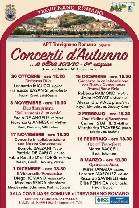 La stagione musicale “Concerti d’Autunno… e oltre“, sotto la direzione artistica del Maestro Angela Pardo, rappresenta ormai un appuntamento culturale di grande livello per Trevignano contribuendo così a promuovere la musica nel suo valore più alto.