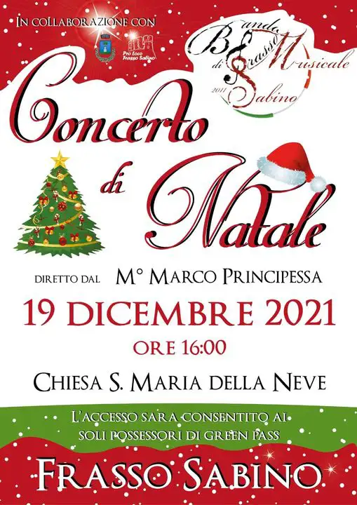 Domenica 19 Dicembre, dalle ore 16 Concerto di Natale della Banda Musicale di Frasso Sabino nella Chiesa Santa Maria della Neve.