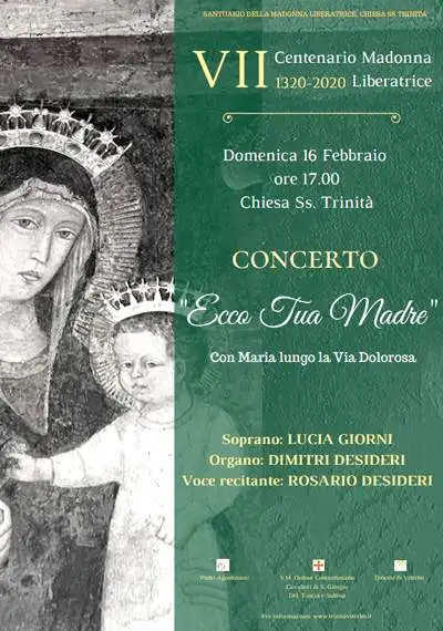 Concerto "Ecco Tua Madre" con Maria lungo la Via dolorosa, per soprano, organo e voce recitante! Domenica 16 Febbraio p.v. alle ore 17:00 presso la Chiesa della SS, Trinità Viterbo. Soprano Lucia Giorni Organo: Dimitri Desideri Voce recitante: Ros...