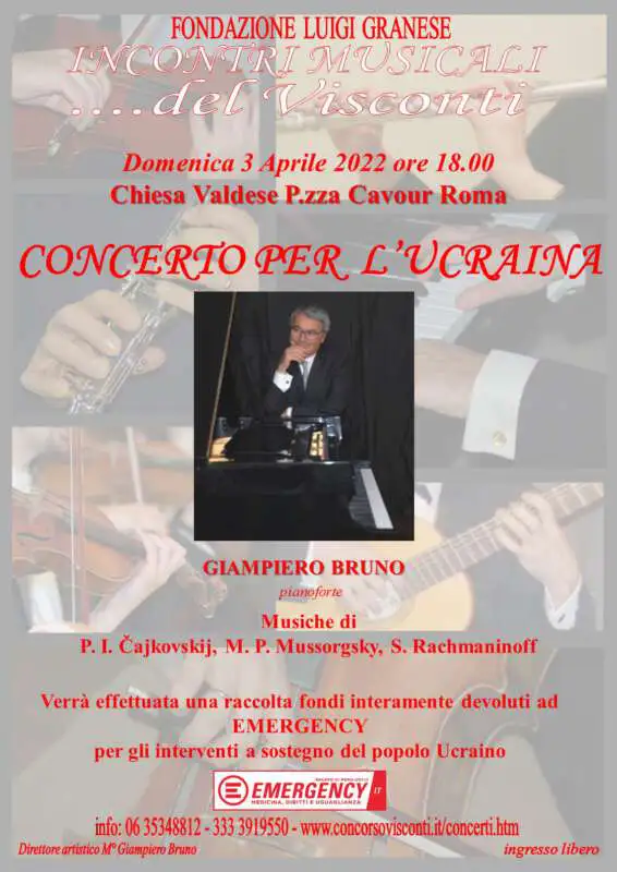 Nell’ambito degli incontri musicali del Visconti la Fondazione Granese organizza un Concerto in favore dell’Ucraina. omenica 3 Aprile alle ore 18,00 presso la Chiesa in piazza Cavour il pianista Giampiero Bruno interpreterà musiche di Chiaikovsky e Mussorskji. Nell’ambito del concerto l’associazione umanitaria Emergency effettuerà una raccolta fondi che verrà totalmente devoluta a sostegno del popolo [...]...