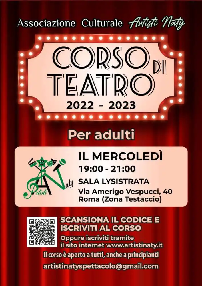 Per informazioni e iscrizioni visita il sito https://artistinaty.it/corsi-di-teatro-per-adulti/