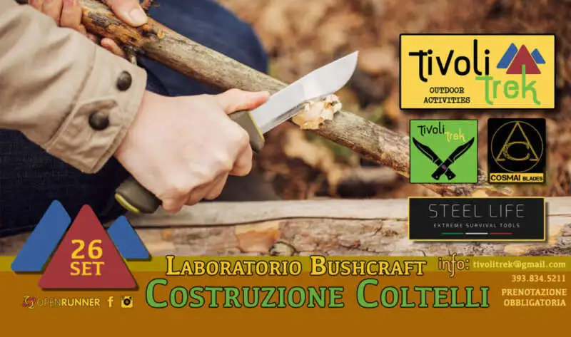 A fine giornata ogni partecipante porterà a casa il PROPRIO COLTELLO progettato e realizzato durante il corso, completo di MANICO in paracord e PERSONALIZZAZIONE DELLA LAMA.