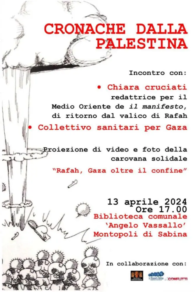 Il 13 aprile alle 17h, alla Biblioteca comunale Angelo Vassallo di Montopoli di Sabina, si terrà “Cronache dalla Palestina”.