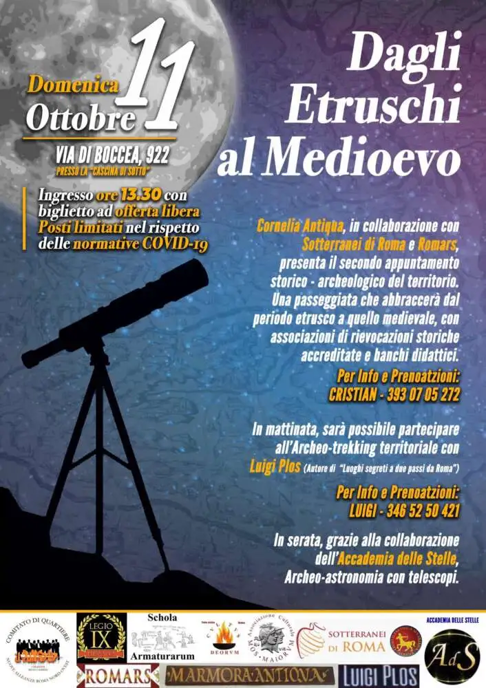 Una serata astronomica con osservazioni al telescopio e guida al cielo concluderà un’intera giornata di rievocazioni storiche ed esplorazione dei tesori archeologici del territorio di Boccea-Cornelia. Con conferenza serale di archeoastronomia.