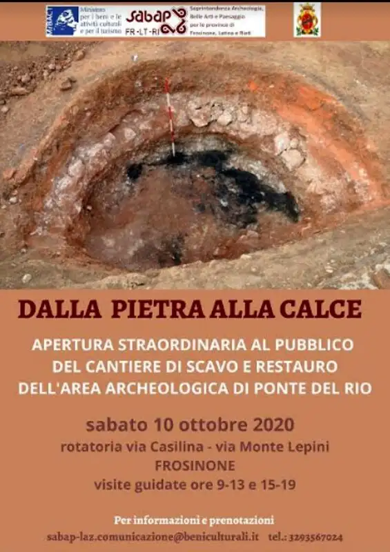 Sabato 10 ottobre 2020 la Soprintendenza Archeologia Belle Arti e Paesaggio per le province di Frosinone, Latina e Rieti organizza a Frosinone l’apertura straordinaria al pubblico dell’area archeologica di Ponte del Rio, con l’iniziativa Dalla pietra alla calce, dedicata alla conoscenza dei processi produttivi e delle tecniche edilizie in uso nel mondo romano.