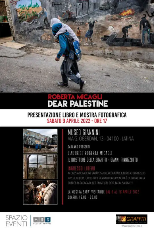 Nuovo appuntamento al MUG Museo Giannini di Latina, sabato 9 aprile alle ore 17.00 sarà inaugurata la mostra fotografica Dear Palestine.