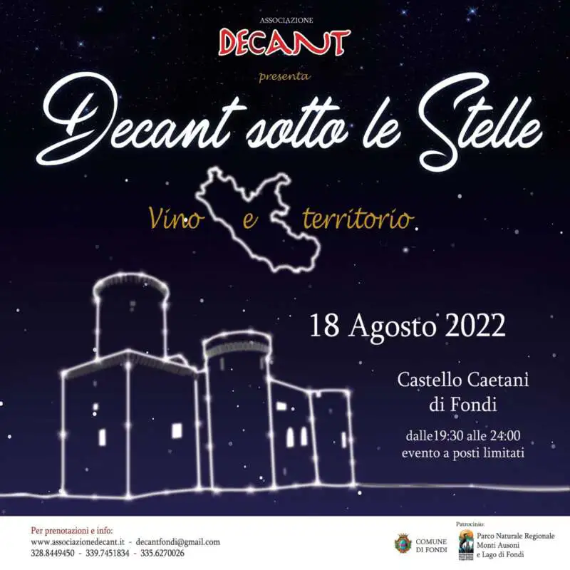 I posti sono limitati ed è necessaria la prenotazione online su www.associazionedecant.it oppure presso Futurgrafica a Fondi (LT) in via Arnale Rosso, 11.