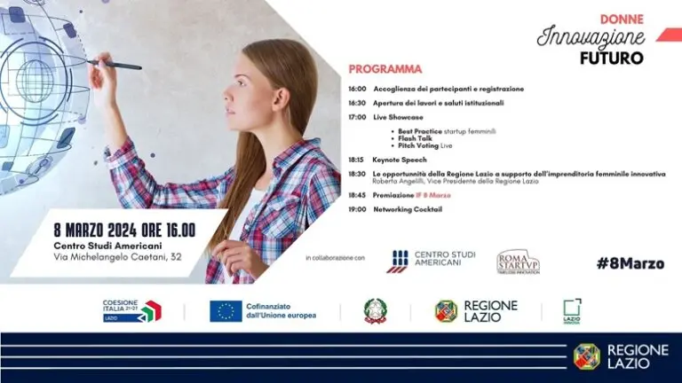 Venerdì 8 marzo la Regione Lazio e Lazio Innova presentano “Donne, Innovazione, Futuro“, con le opportunità a supporto dell’imprenditoria femminile innovativa.
