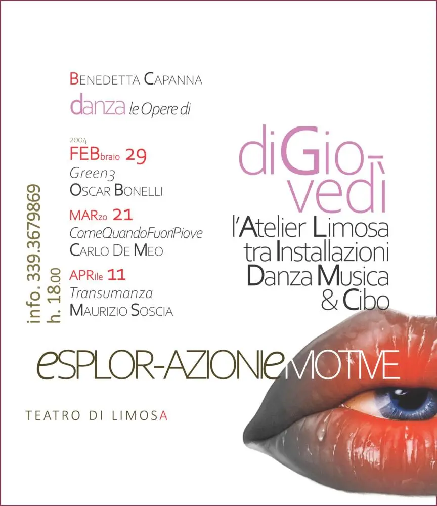 esplor-azioniemotive è il ripartire da ciò che è sempre stata Limosa: un crocevia di arti, bellezza e il coinvolgimento dello spettatore-partecipante. Artisti visivi, amici, ammiratori, insieme a fotografi, attori, poeti, danzatrici, allievi sono stati i protagonisti di un’avventura durata 20 anni.