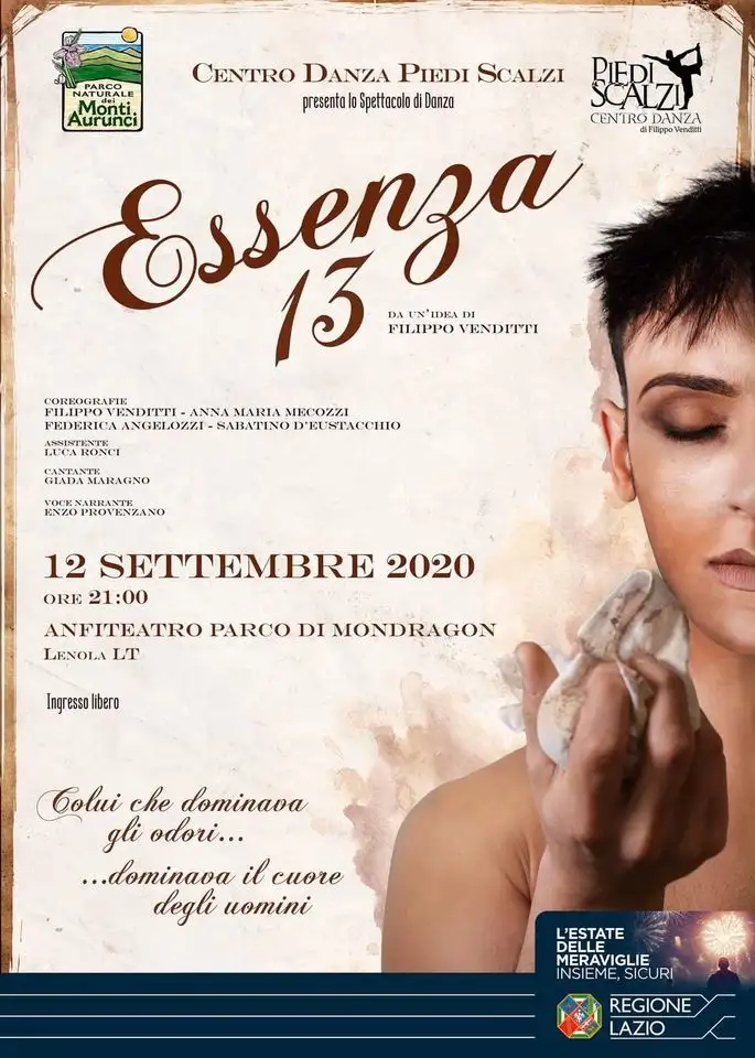 Alle ore 21 nel Parco Mondragon lo spettacolo di Danza “Essenza 13” del Centro Danza Piedi Scalzi di Filippo Venditti.