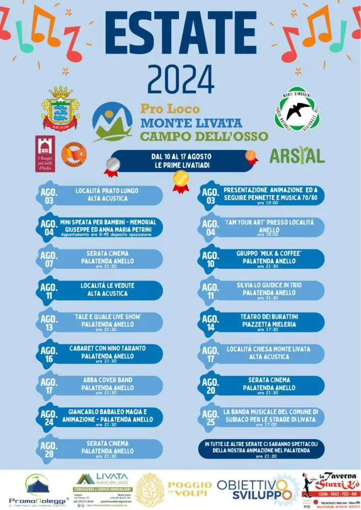 Estate 2024 a Monte Livata e Campo dell’Osso! Cari amici, preparatevi a un’estate indimenticabile! Ad agosto, la Pro Loco vi invita a un programma ricco di sorprese che vi farà ridere, ballare e divertire come mai prima d’ora! Sarà un mese pieno di magia, musica e tanto divertimento! Seguiteci sui nostri social per tutti gli [...]...