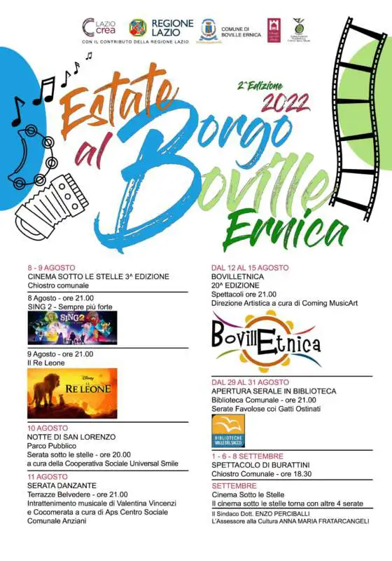 E ancora, attività in biblioteca e al parco pubblico, spettacoli, socializzazione e il grande ritorno della musica popolare con BovillEtnica, direzione artistica Coming MusicArt.