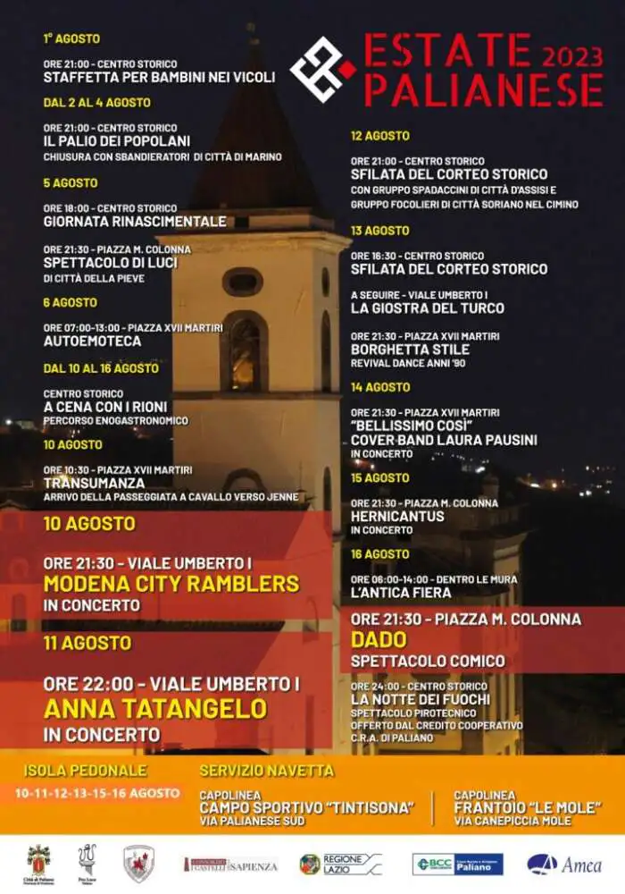 ESTATE PALIANESE 2023….. Al via con gli eventi!!! Dal 1 al 4 agosto PALIO DEI POPOLANI 5 agosto GIORNATA RINASCIMENTALE Dal 10 al 16 agosto PERCORSO ENOGASTRONOMICO NELLE CANTINE DEI RIONI 10 agosto concerto MODENA CITY RAMPBLERS 11 agosto concerto ANNA TATANGELO 12 agosto SFILATA NOTTURNA DEL CORTEO STORICO 13 agosto SFILATA CORTEO STORICO e [...]...