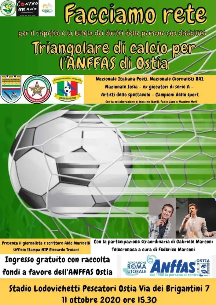 ” FACCIAMO RETE ” è il triangolare benefico di calcio che la Nazionale Italiana Poeti ha organizzato per il prossimo 11 ottobre, con inizio alle ore 15.30, presso il Pescatori Ostia