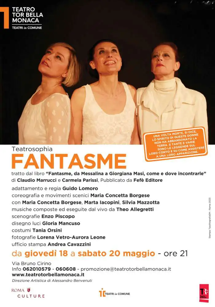 Dal giovedì 18 a sabato 20 maggio, arriva al Teatro Tor Bella Monaca Fantasme, poetica carrellata di eroine che hanno attraversato la storia del nostro Paese in un arco di tempo che parte dai fasti dell’antica Etruria fino ai primi anni ’70 del secolo scorso.