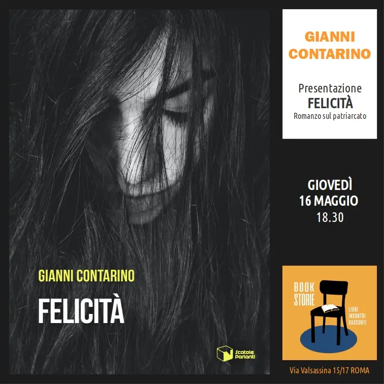 Roma. Appuntamento giovedì 16 maggio alle 18.30 presso la libreria Bookstorie, in Via Valsassina 15/17, per la presentazione di “Felicità”, nuovo romanzo di Gianni Contarino pubblicato dalla casa editrice Scatole Parlanti.