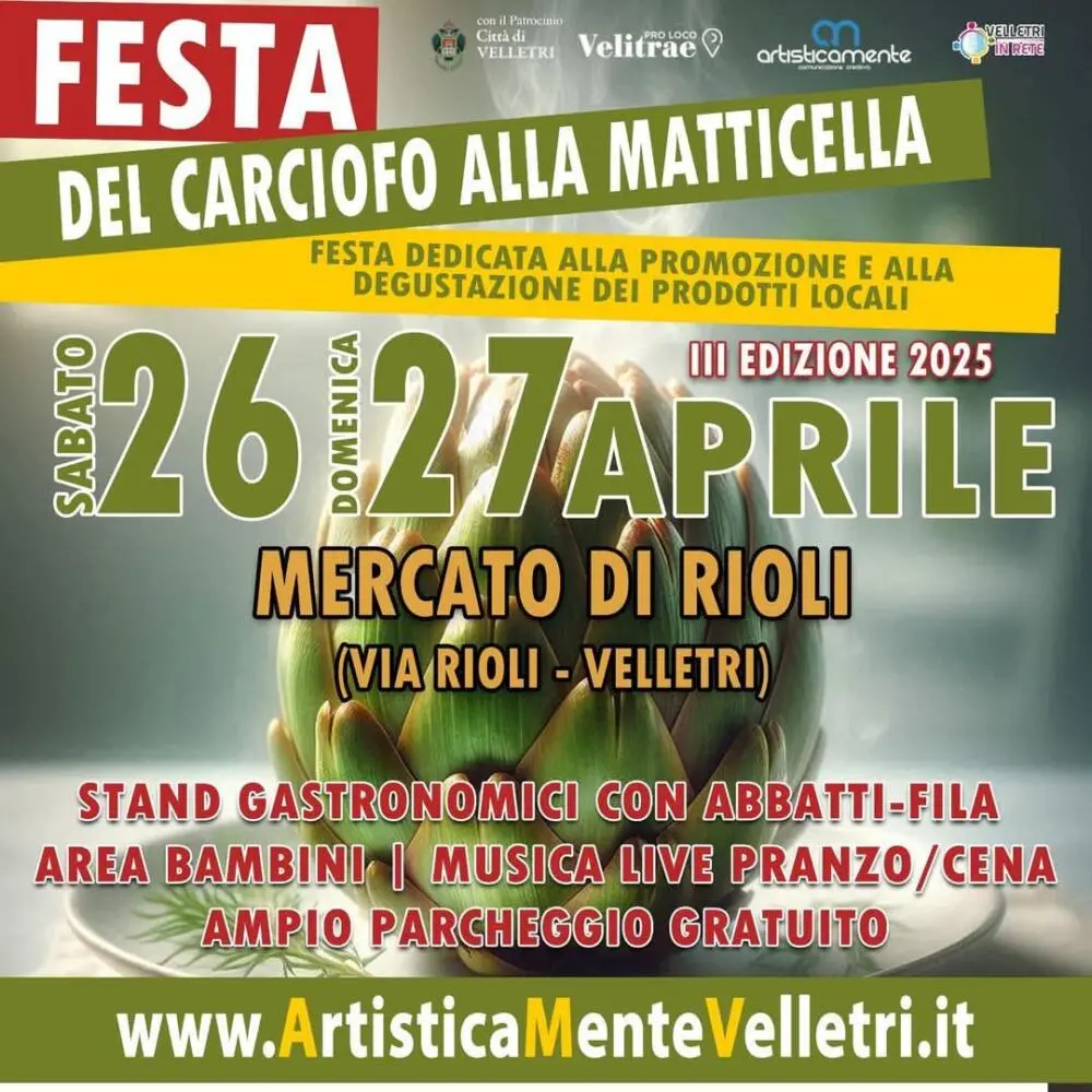 Ritorna anche quest’anno la Festa del Carciofo alla Matticella, con il patrocinio del Comune di Velletri, arrivata alla III edizione, è l’evento primaverile che celebra uno dei prodotti più amati del nostro territorio.