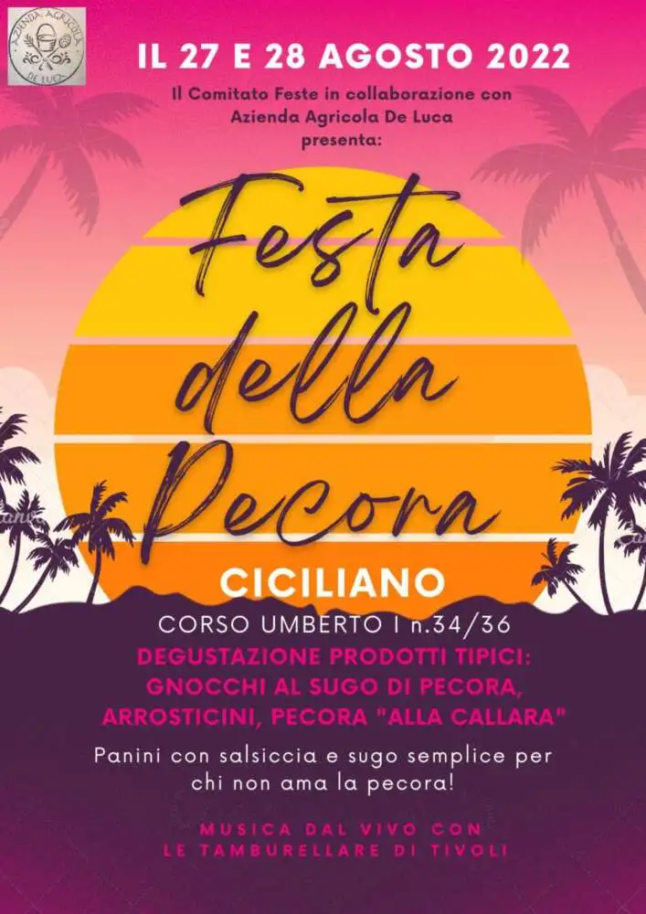 Il Comitato Feste in collaborazione con l’Azienda Agricola De Luca organizza a Ciciliano la Festa della Pecora, arrivata ormai alla sua nona edizione.