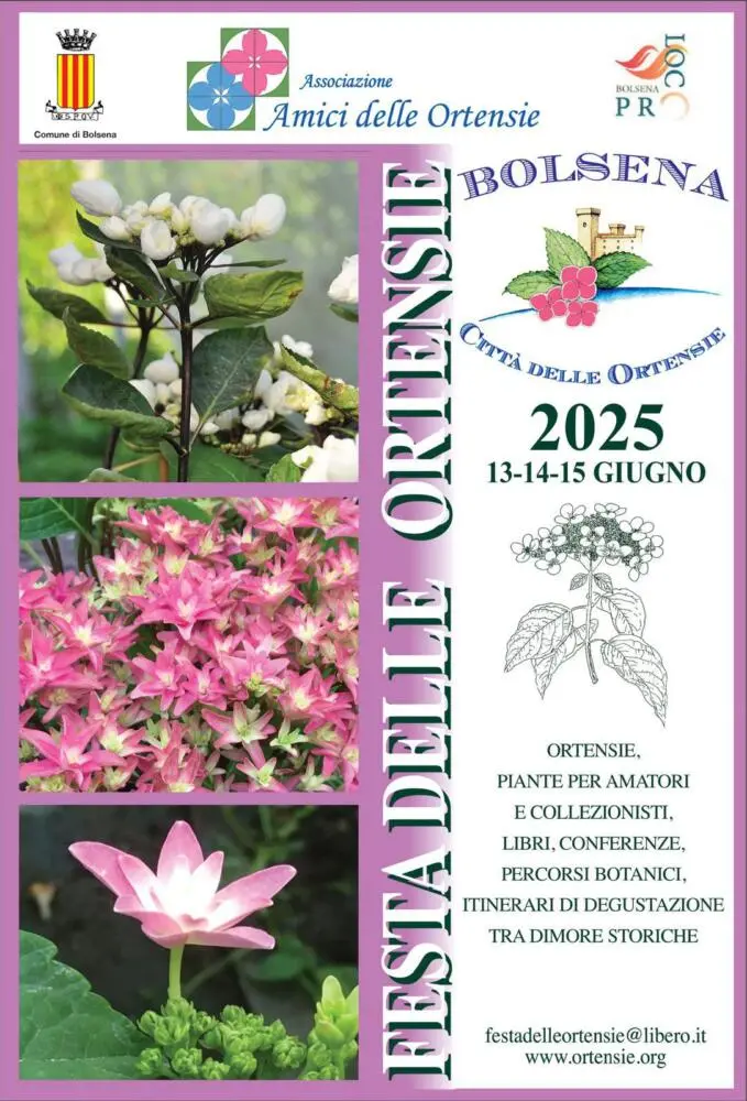 Organizzata dal Comune di Bolsena, dalla locale Pro Loco e dall’Associazione Amici delle Ortensie, la Festa delle Ortensie è cresciuta negli anni fino a diventare un punto di riferimento per esperti del settore, collezionisti e appassionati, attirando espositori non solo da tutta Italia, ma anche dall’estero.