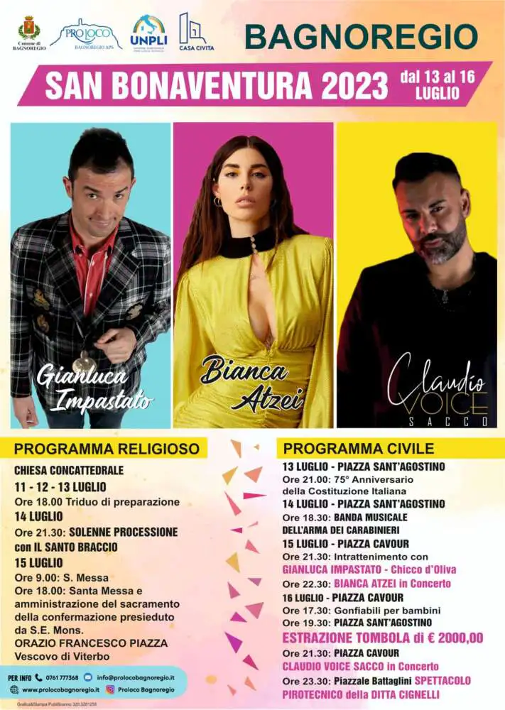 Gli eventi per la festa di San Bonaventura, patrono di Bagnoregio, si svolgono dal 13 al 16 luglio 2023.