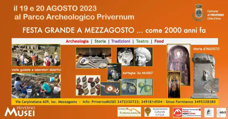 Anche quest’anno torna la ” Festa Grande a Mezzagosto … come 2000 anni fa “, in programma il 19 e 20 agosto presso il Parco Archeologico Privernum.