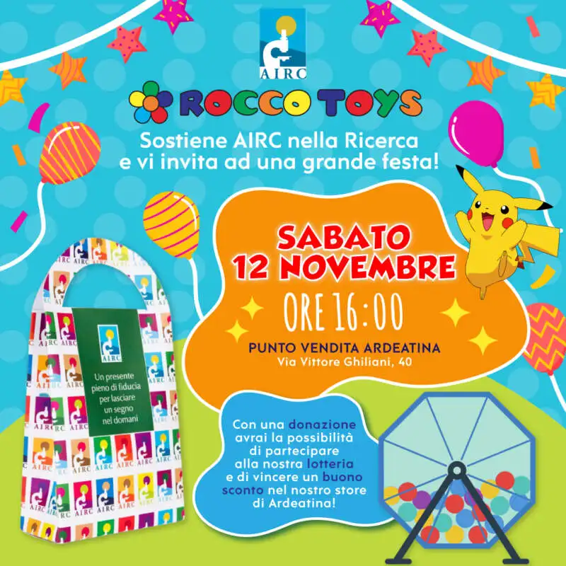 Rocco Toys collabora, ormai da anni, con AIRC sposando la loro causa: finanziare progetti scientifici sulla ricerca oncologica, diffondere informazioni e promuovere la cultura della prevenzione.